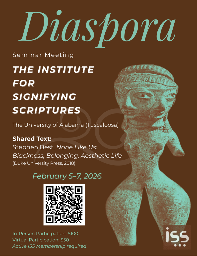 The Institute for Signifying Scriptures will convene for a seminar on the social rupture known as “diaspora.” From ancient contexts to contemporary strivings, diaspora challenges us to frame the tensions of social displacement and communal belonging. Participants will explore how human beings make sense of themselves, others, and their surrounding worlds after the violence of dispersion. Through museum exhibitions, guided historical tours, and critical discussion, our circle will consider scripturalization as historical erasure, cultural (re)formation, and technology of difference-making. This will be an amazing event for professional scholars, graduate students, and thoughtful persons interested in critical exchange.